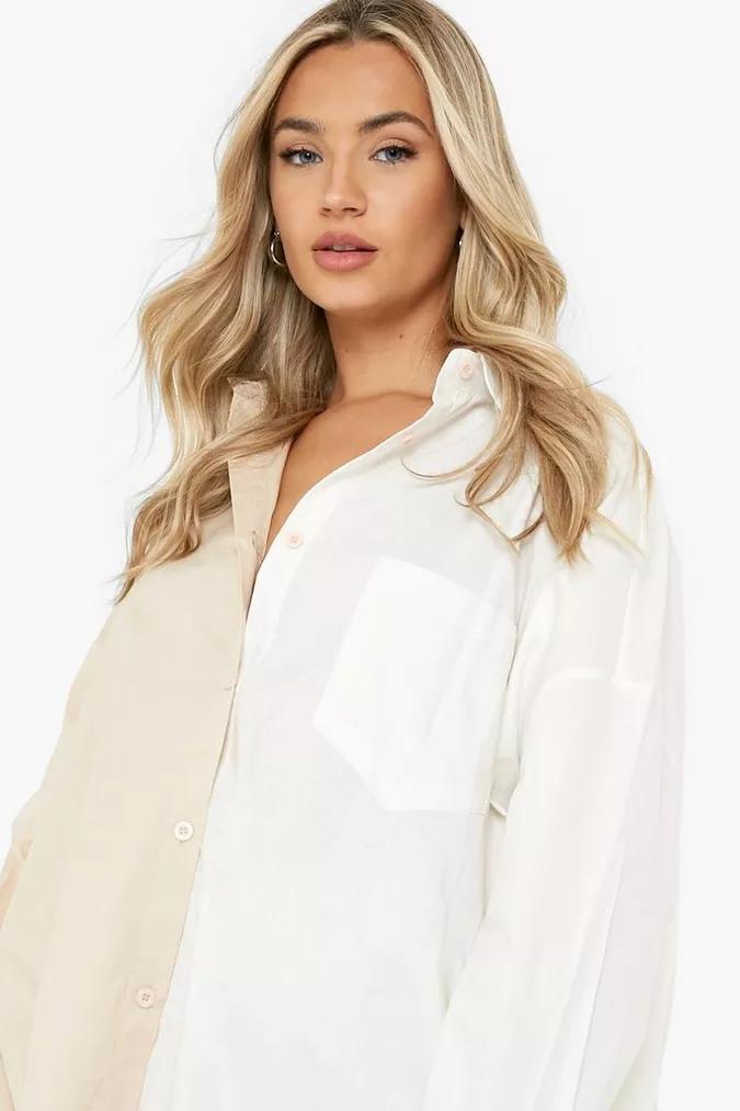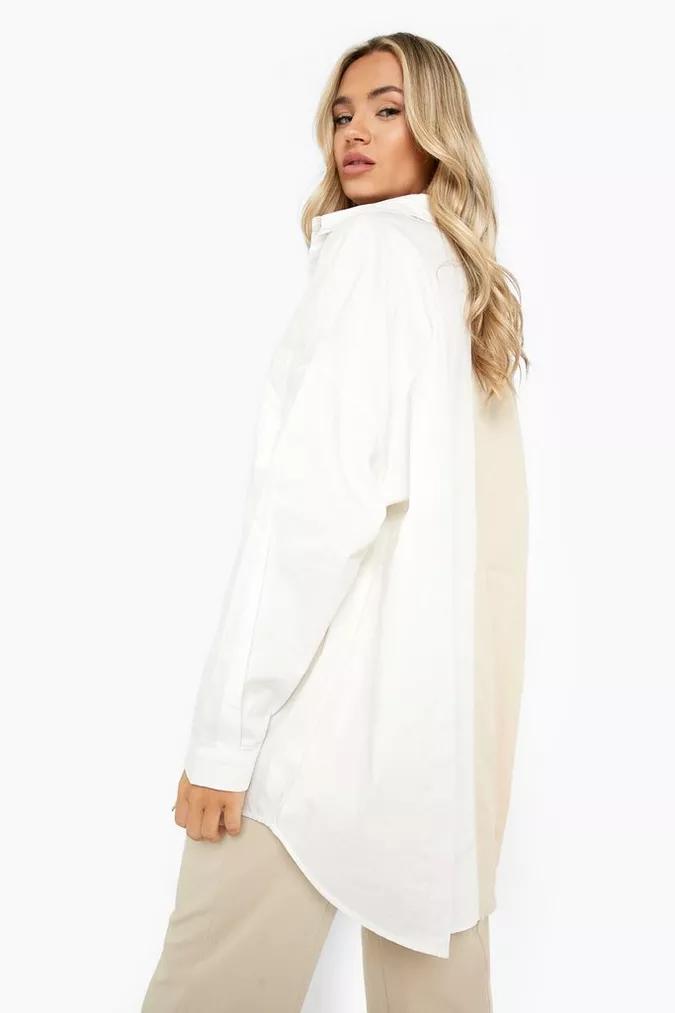 Cotton Spliced Oversized Shirt