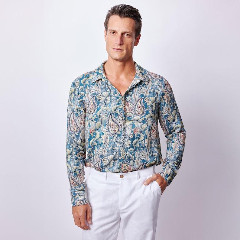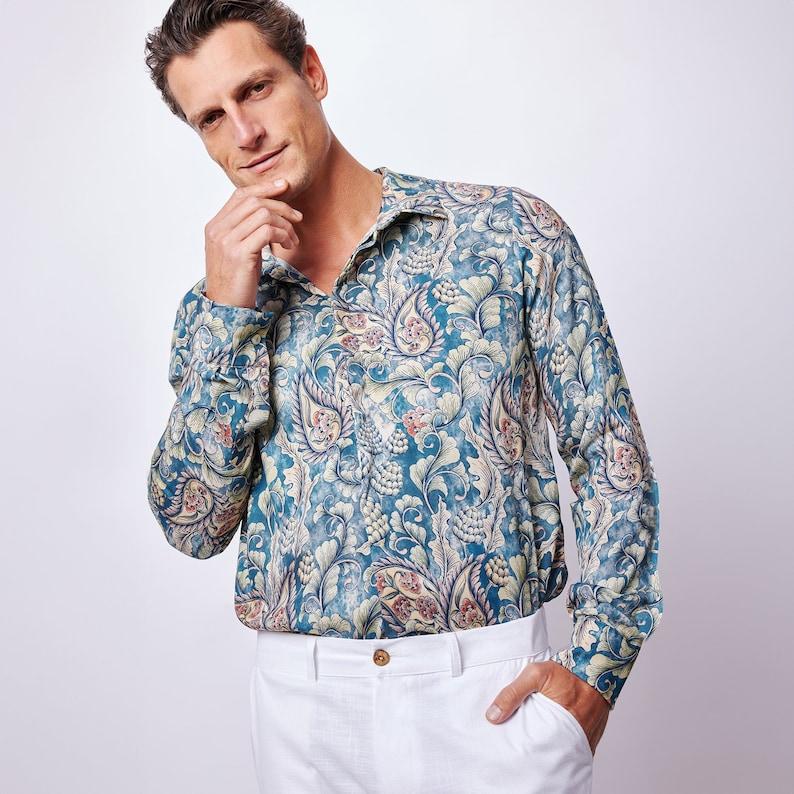 Handmade Digital DrAWINg, Ultra Soft Organic Viscose , Quality Fabric, Elevate your style with our exclusive Paisley Long Sleeve Shirt for men, a genuine limited edition masterpiece. This shirt has been meticulously crafted, showcasing a captivating digital design featuring a striking paisley print that stands out on its luxuriously soft organic viscose fabric with a silky texture.