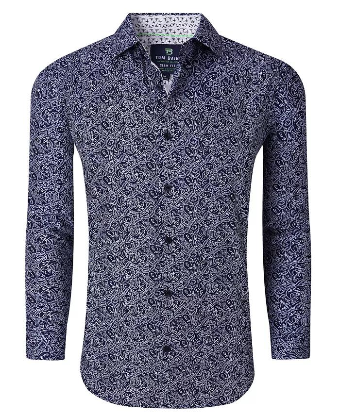 TOM BAINE Men's Performance Stretch Paisley Button Down Shirt