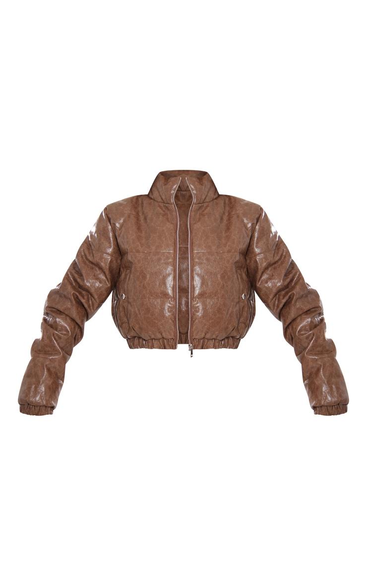 Keep it chic this season with this chocolate textured faux leather puffer jacket. It is made using a chocolate textured faux leather material with a puffer style and a zip front design, you won't be able to resist. Team with some cargo pants, comfy flats and a tote bag for the perfect off-duty fit.