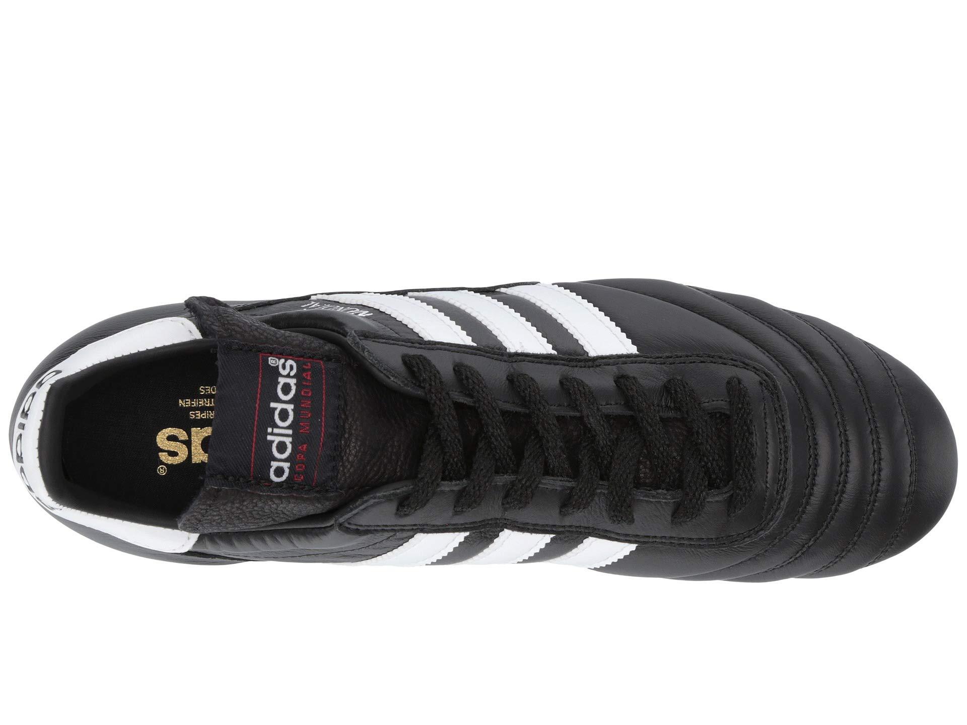 Please note that due to the use of kangaroo leather in this product and restrictions under California law, we are unable to ship this style to addresses in California. Traditional soccer designs are the face of the adidas Copa Mundial cleats, that set the standard of today's soccer products with the same technologies and material that have been soccer player favorites for decades. Durable kangaroo leather upper. Cushioned collar for comfort. Lace-up closure for optimal fit. Signature 3-Stripes logo on sides with Copa Mundial callout on lateral side. Molded adidas callout on heel. Smooth synthetic lining. Lightly padded footbed for added comfort and support. Direct-injected PU outsole with molded studs for use firm ground. Imported. Measurements: Weight: 10 oz Product measurements were taken using size Men's 7, Women's 8, width Medium. Please note that measurements may vary by size.