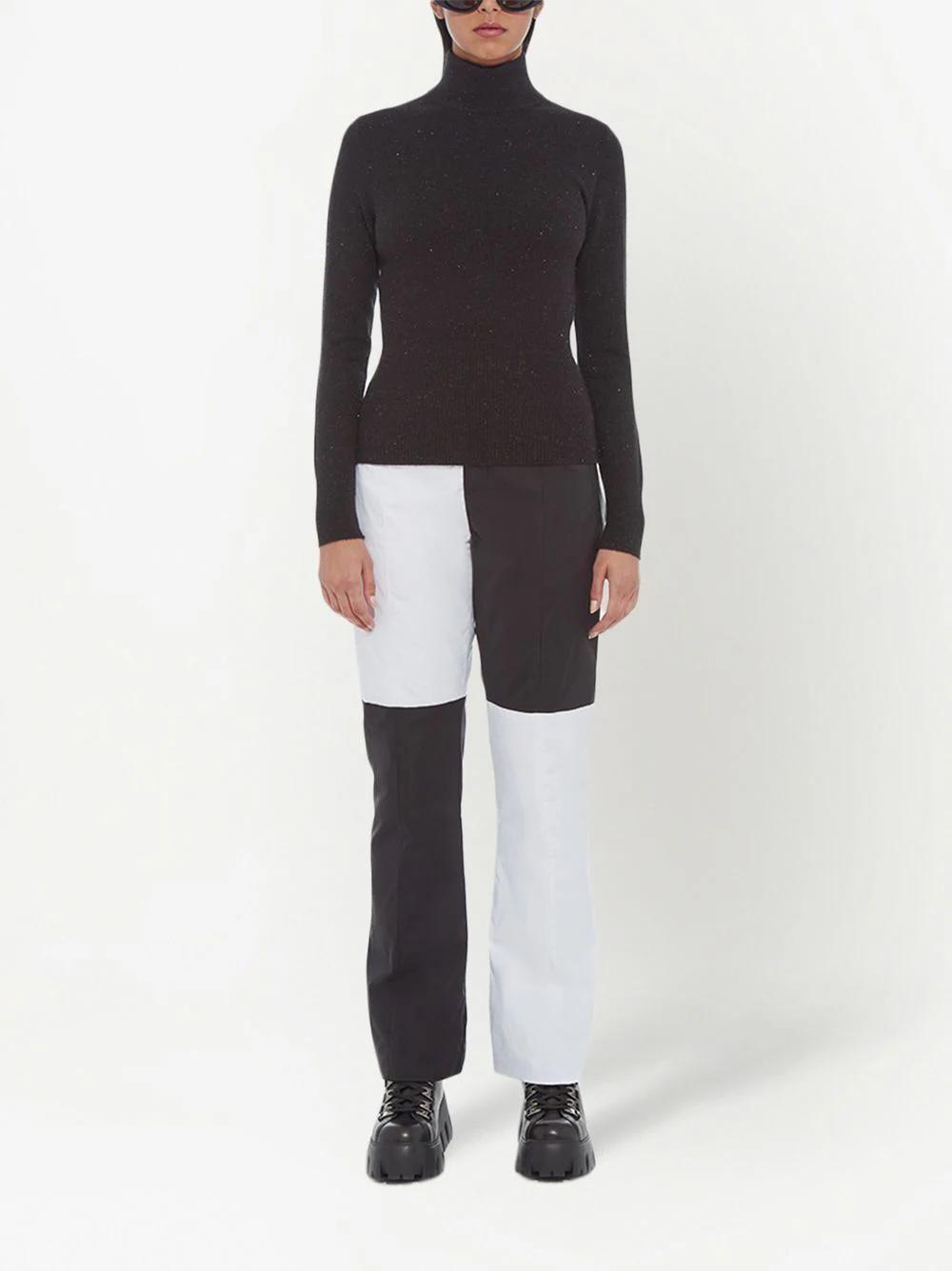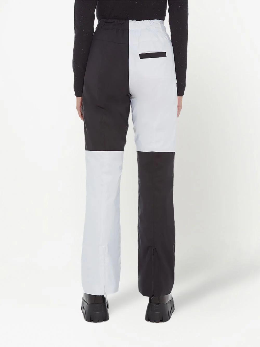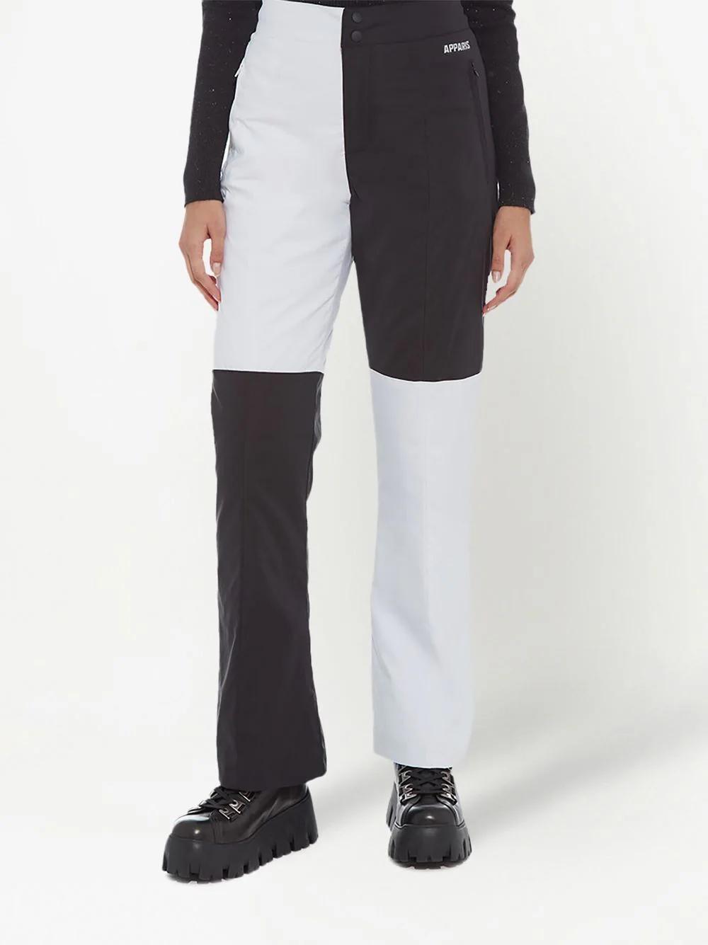 logo-print two-tone trousers from APPARIS featuring white/black, logo print to the side, front button fastening, two diagonal pockets to the sides, straight leg and two-tone design. Conscious: This Animal Conscious product comes from a PETA-approved Vegan brand, so you can be confident that you are helping to support animal welfare..