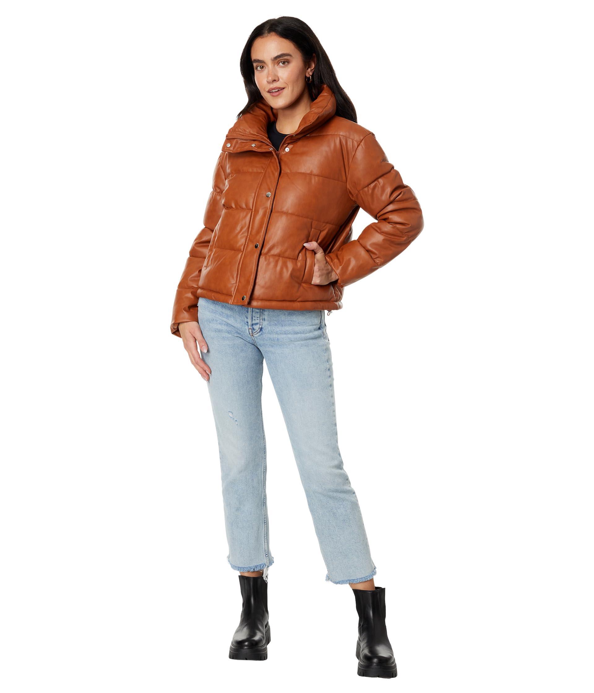 Keep your look sharp and fashionable while enjoying the sculpting comfort of the Avec Les Filles™ Faux-Ever Leather™ Cropped Puffer. Constructed with Thermal Puff™ faux down fill technology and buttery soft Faux-Ever Leather™ exterior, the puffer jacket offers warmth and practicality. It features a mock neckline, long sleeves, and a straight hemline.