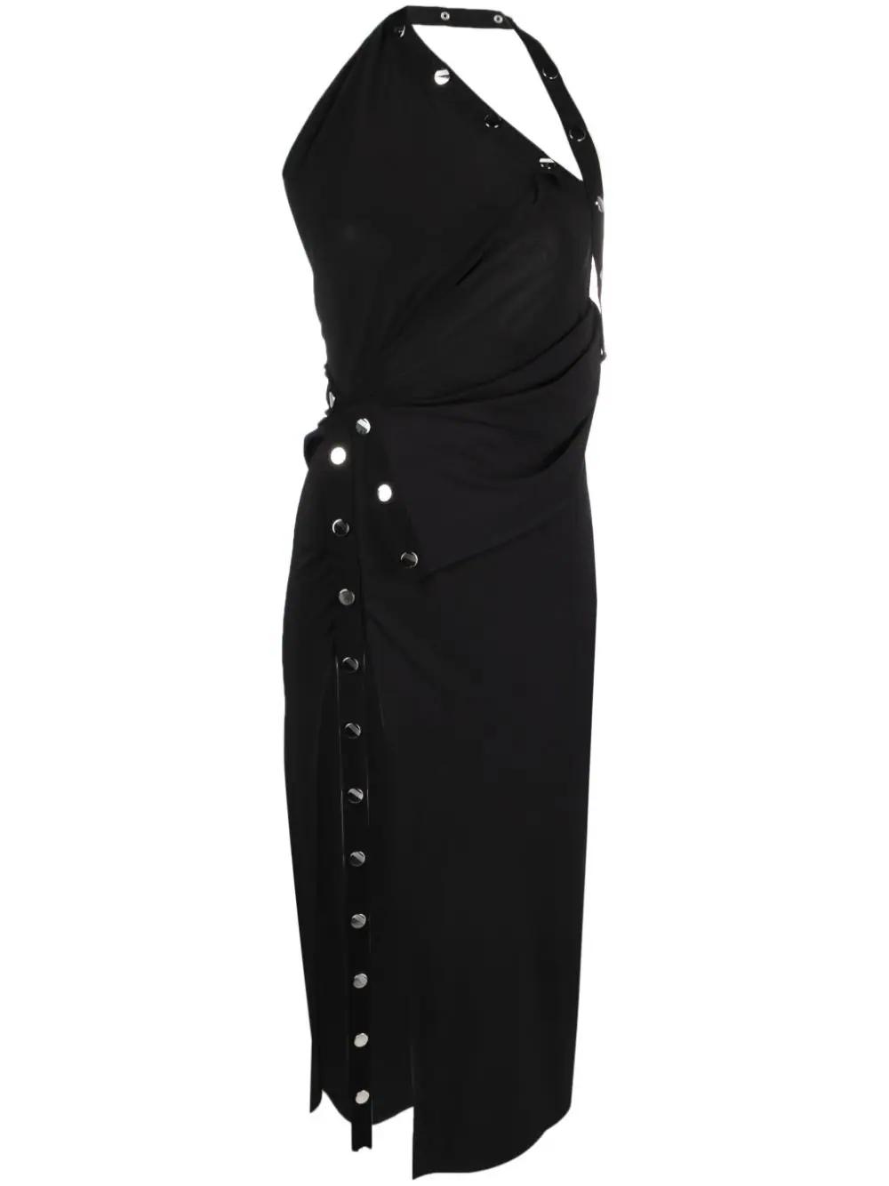 The Attico's signature bold and daring aesthetic is on display with this black dress. It's cut to an asymmetric, halterneck silhouette with strategically placed slits and silver-tone stud trims.