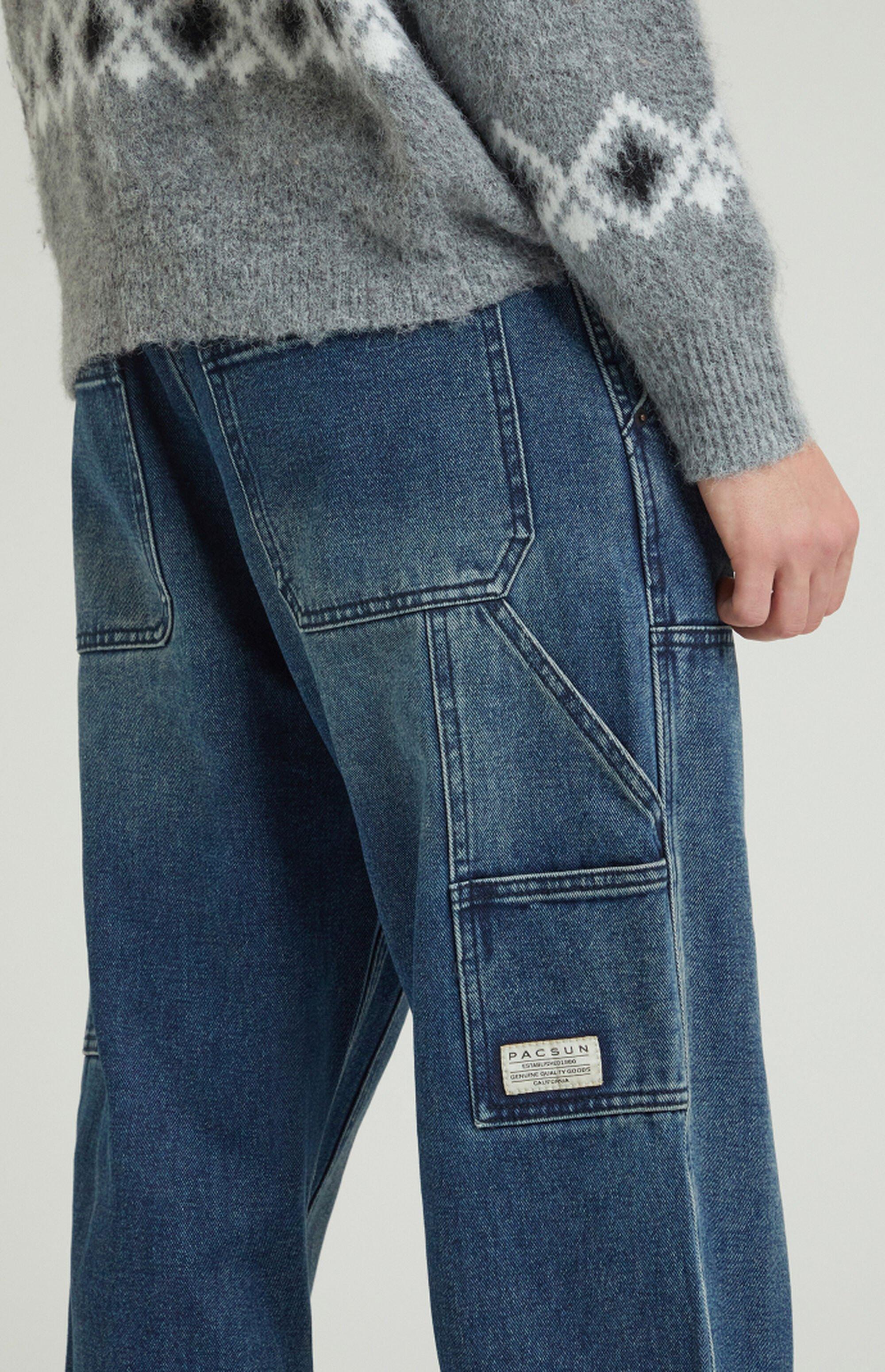 Step into timeless style with the Dark Indigo Baggy Carpenter Jeans from PacSun. These jeans feature a rich dark indigo wash, side hand pockets, and reinforced leg panels for durability. With a utility loop at the side and multiple utility pockets, these jeans bring both functionality and a relaxed, baggy fit for easy everyday wear.