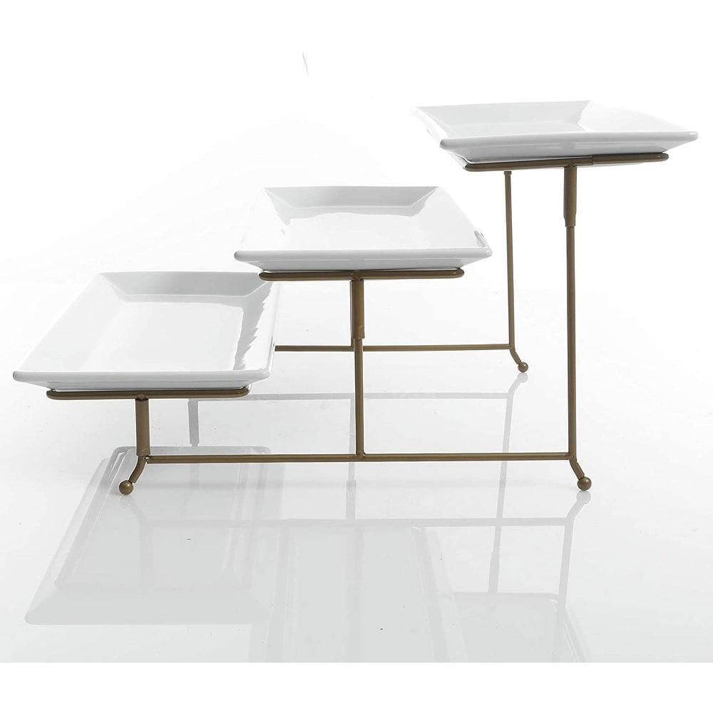 Gibson Elite Gracious Dining 3 Tier Rectangular Serving Platter Cake Stand, Gold - 1
