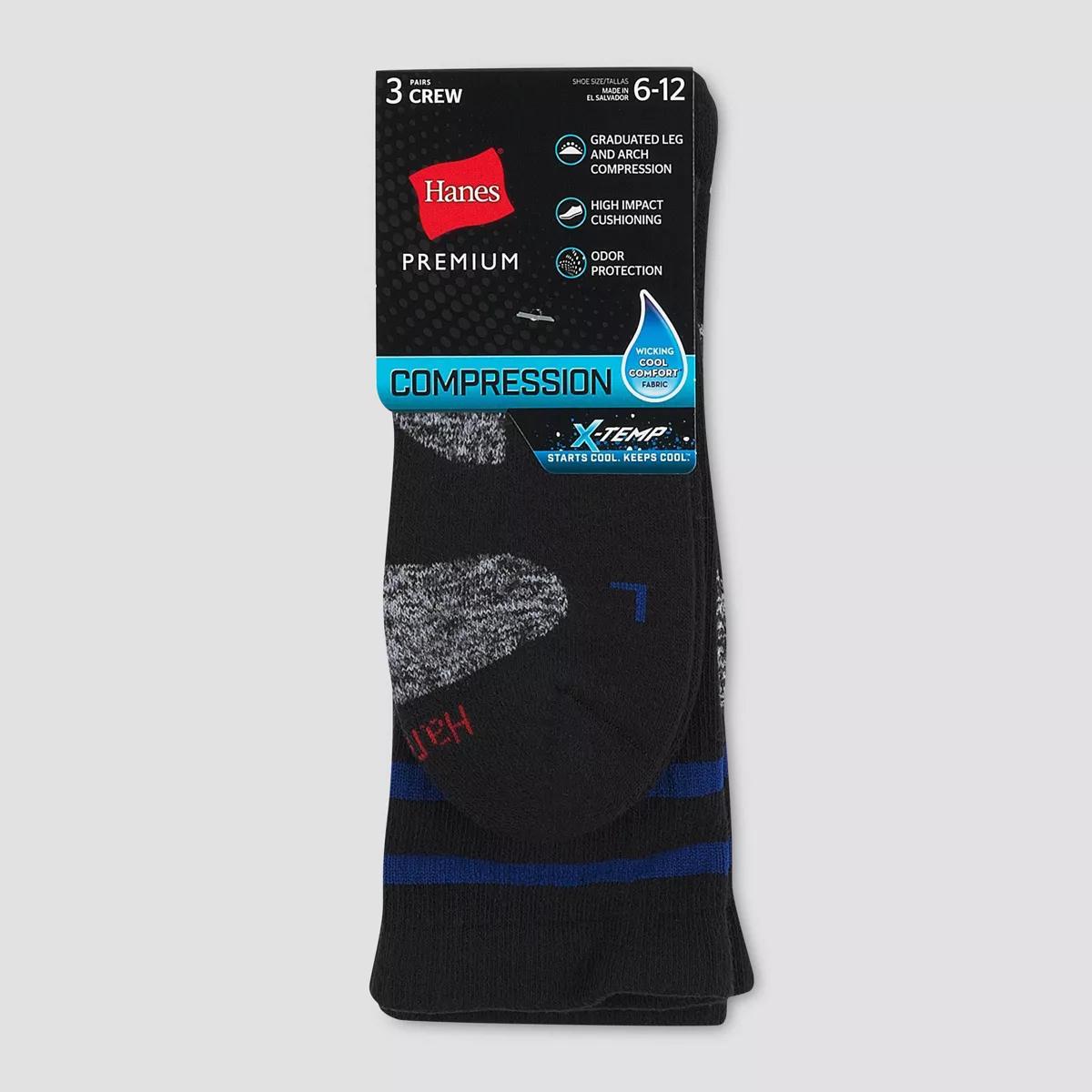 Hanes Premium Men's Compression Crew Socks 3pk - 6-12