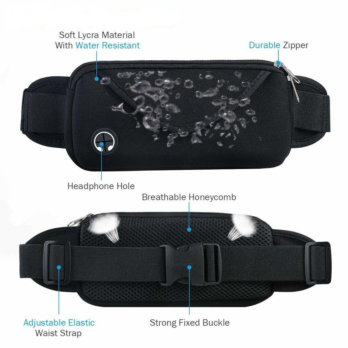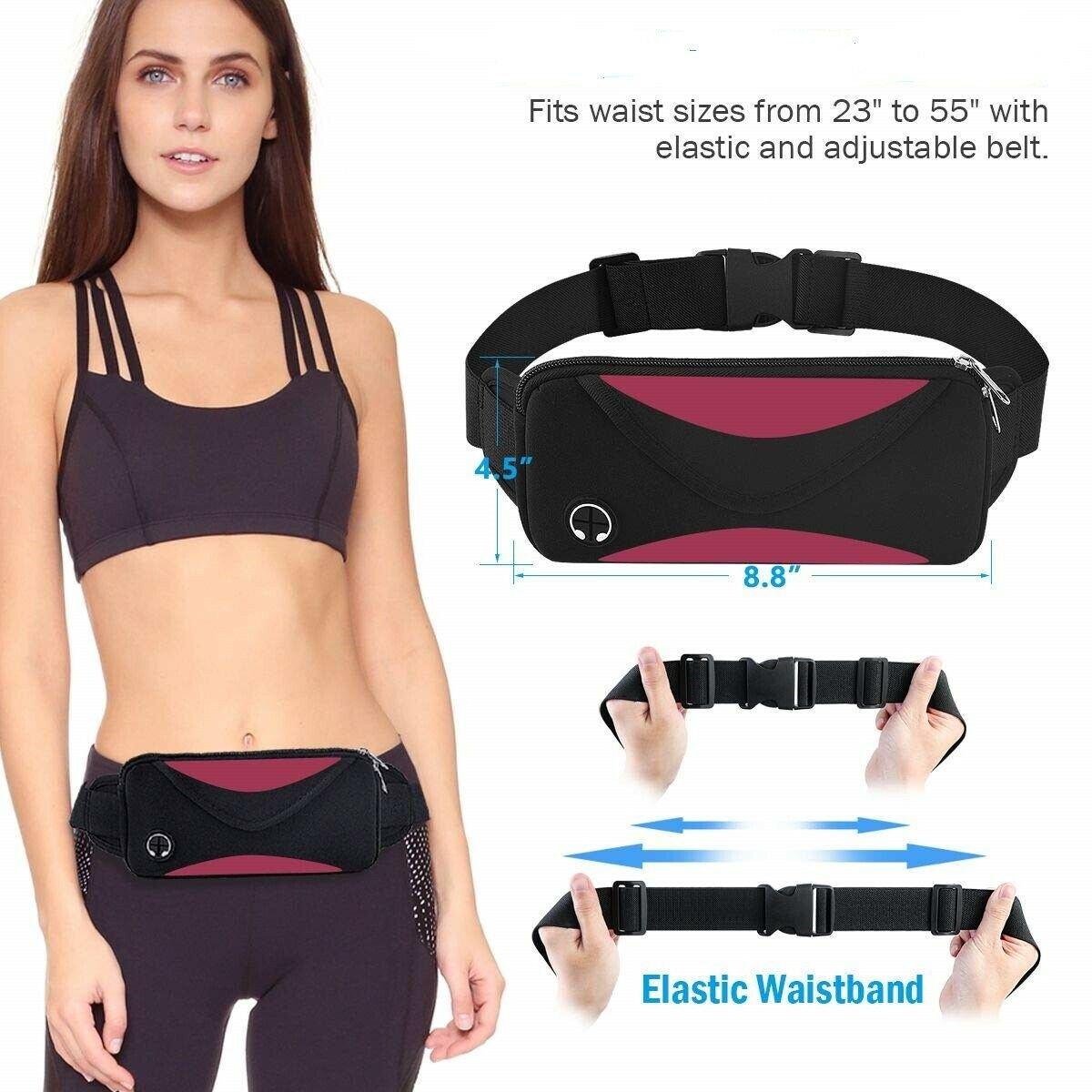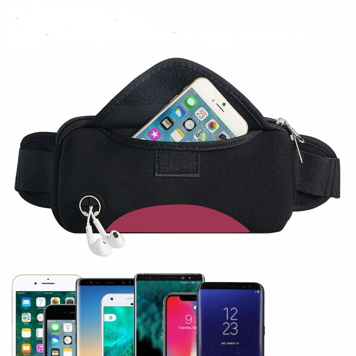 Waterproof Running Waist Bag with Headphone Jack - Adjustable Sport Fanny Pack for Jogging, Hiking, Travel, Fits All Phones TIKA