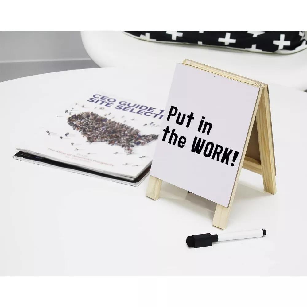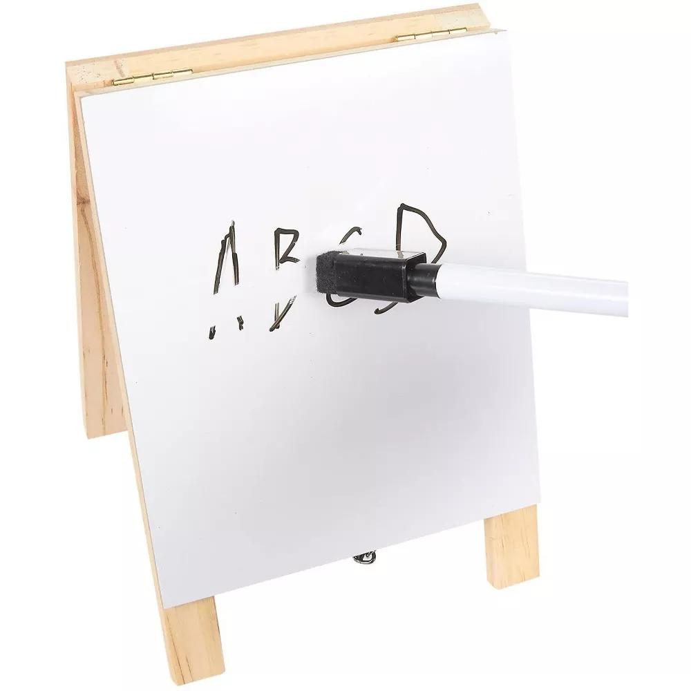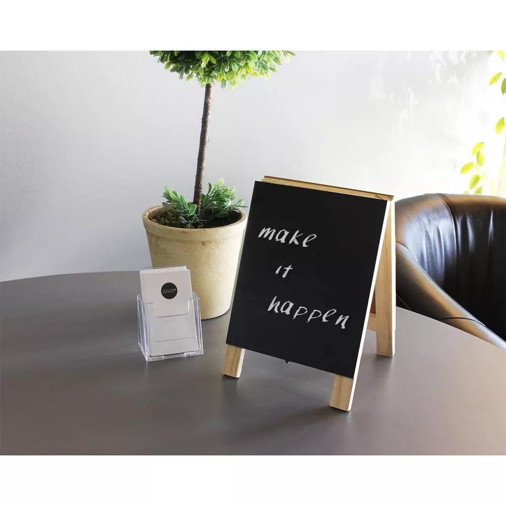 Are you looking to add a well-fitting touch of old-fashioned rustic style to your kitchen, coffee shop or storefront? This charming and quaint blackboard and whiteboard sign is the ideal addition to any traditionally themed backdrop owing to its unpainted frame made from natural wood that has great strength and quality.This tabletop chalkboard easel features two blackboards; one natural slate tone board and one white non-magnetic board.