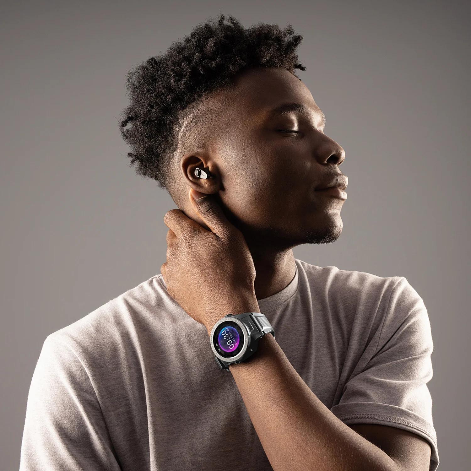 Wearbuds Watch breaks the monotony by combining earbuds and smartwatch and bringing together classic digital watchesâ aesthetics with the futureâs smart tech. The Wearbuds Watch is a revolutionary device that brings together a smartwatch, high-quality earbuds, and an advanced health & fitness tracker into one perfect timepiece. This is a smartwatch that stores the earbuds and charges them very quickly. Slide your earbuds into the smartwatch to charge their batteries. Then, take them out whenever you need them and enjoy the high-quality audio that keeps you motivated and helps hit the goals! In addition to advanced fitness features, a new design, and a built-in magnetic charger station for earbuds, the Wearbuds Watch improves on its predecessor with a larger display and advanced health monitoring features, such as more accurate heart rate monitor, sleep monitor and sedentary alerts. With a large and high-brightness display for enhanced readability and advanced performance features, Wearbuds Watch is built to help you keep up on all your goals. Track your activity, listen to music, answer calls, and much more, all from the comfort of your wrist. Wearbuds Watch earbuds with an improved battery life of up to 12 hours (with recharges), and Bluetooth 5.0 connectivity ensure a seamless and powerful listening experience. Simply tap the earbuds to stop and play the music, answer or reject calls. Features: 1.28 inch round HD display On-wrist charging Sports health record Call and message reminder Heart rate monitoring Long battery life Bluetooth 5.1 Blood oxygen detection Watch IPX7 waterproofï¼earbuds IPX5 waterproof | AIPOWER Wearbuds W26 Smartwatch w/ Wireless Earbuds and Fitness Tracker in Black