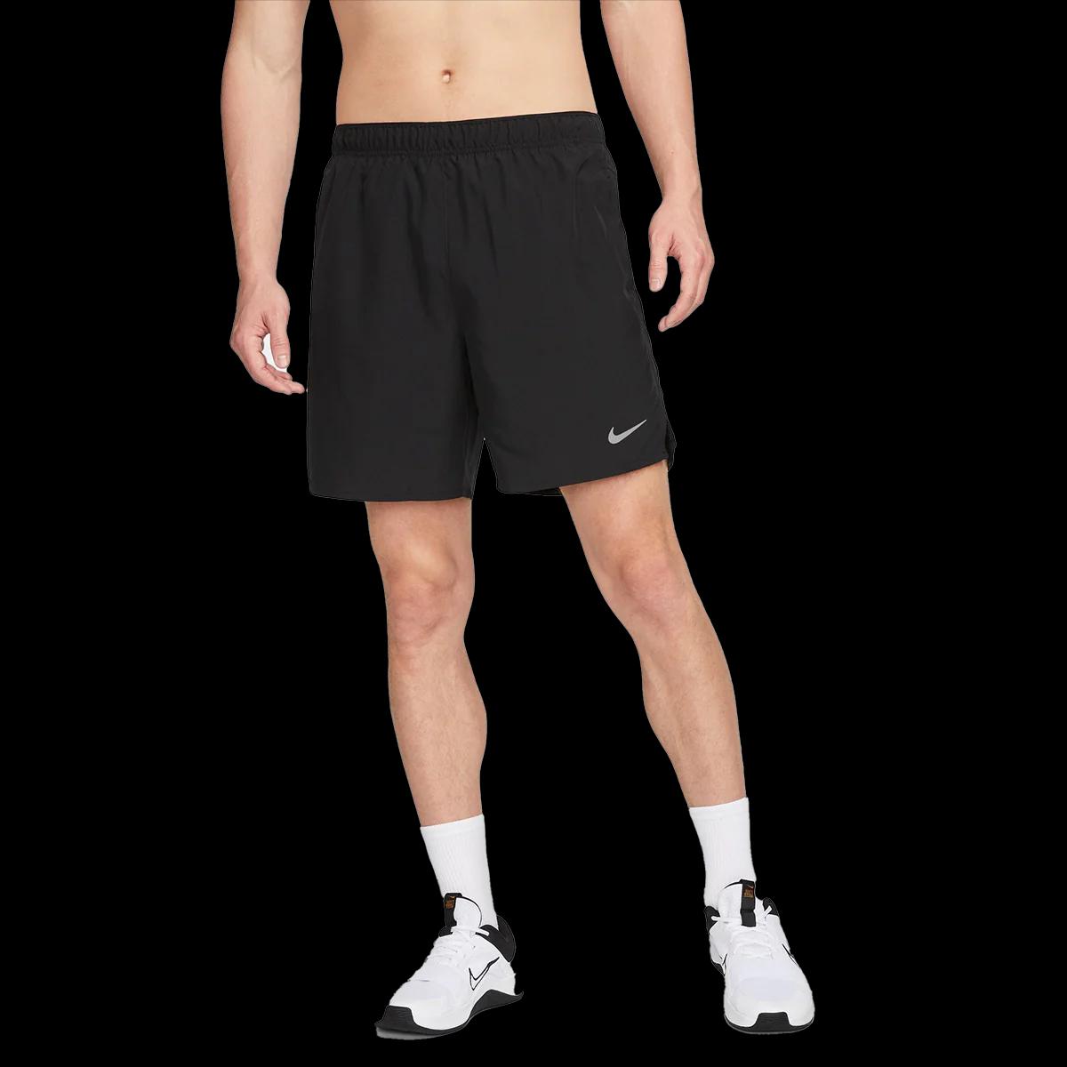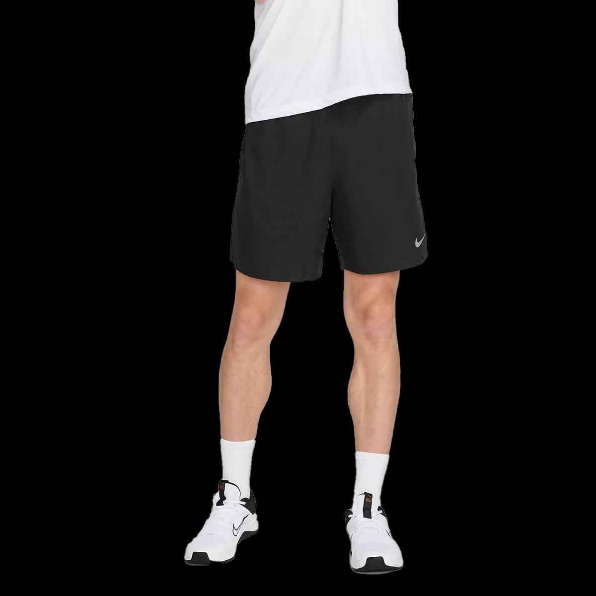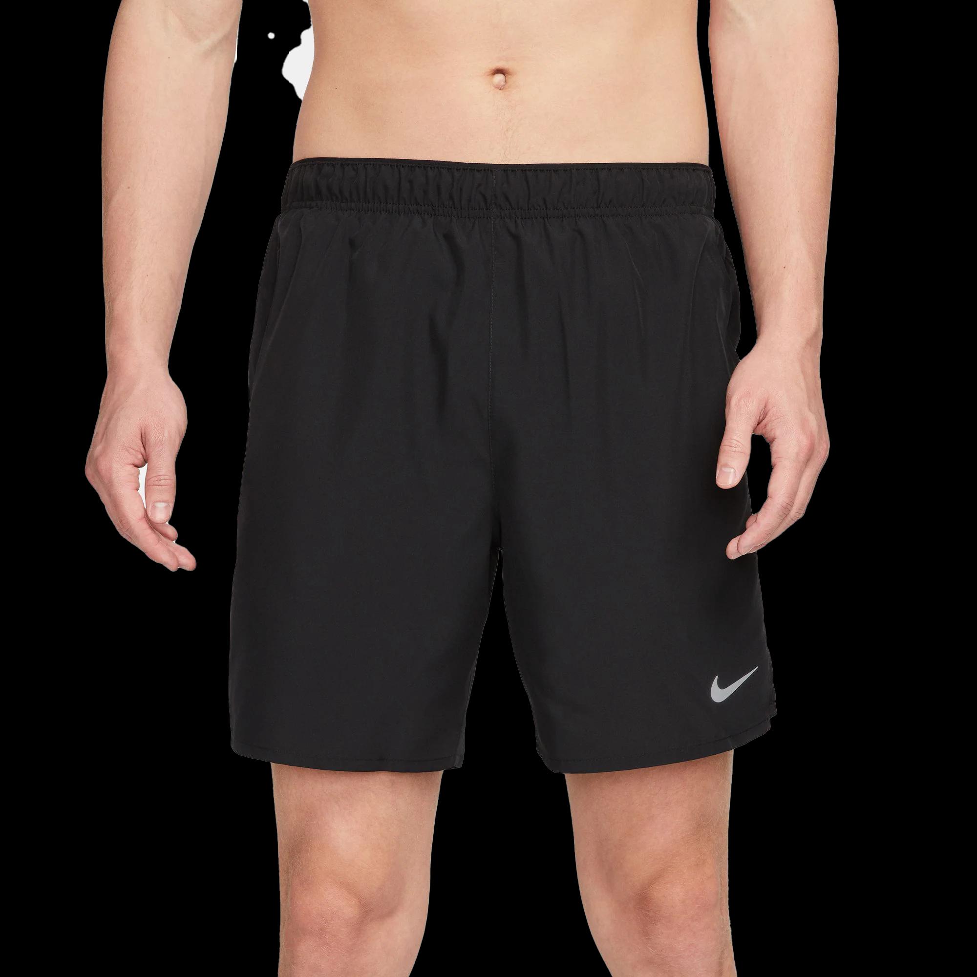 Features: Stay-Dry Support. Nike Dri-FIT technology moves sweat away from your skin for quicker evaporation, helping you stay dry and comfortable. Brief lining offers lightweight support. Race Ready Comfort. Made with lightweight and stretchy woven fabric, these shorts also have mesh at the lower side panels to help you stay cool. Side vents keep you moving freely through your stride. Safe Storage. Hand pockets help keep small essentials close, like your keys or card. A back pocket with a hook-and-loop closure is big enough to hold most phones. Designed for Running, Yoga and Training Liner: Brief Fabric: Lightweight woven Storage: Side pockets and hook-and-loop back pocket Waistband: Narrow with drawcord Specs: Lenght: 5" Body: 100% polyester. Lining: 92% polyester/8% spandex. Machine wash Imported Not intended for use as Personal Protective Equipment (PPE) | Nike Dri-Fit Challenger Shorts | XL | Cobalt Bliss/Reflective Silver | Polyester