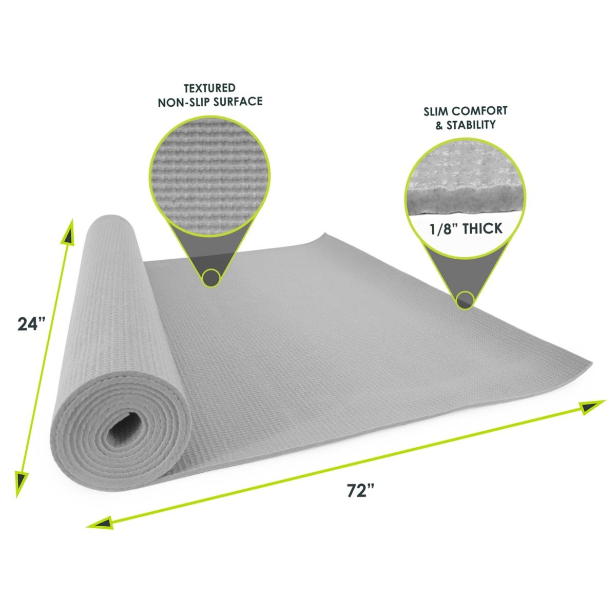 The ProsourceFit Classic Yoga Mat 1/8” is for straight-to-the-point yogis who are minimalists. This 6-foot design provides the extra length needed while maintaining a traditional 24” width and slim 1/8” (3mm) style when you re not looking for a wide or overly-cushioned mat.