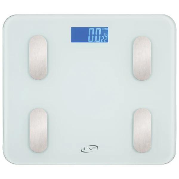 Keep track of your weight loss journey using the iLive Smart Digital Body/Weight Scale. Connect your scale to the free app to monitor weight, BMI, body fat, visceral fat and muscle mass as you seek to improve your fitness. Tempered safety glass platform offers durability. Bluetooth body fat scale measures weight, BMI and BMR. Connect to the free app to monitor weight, BMI, body fat, visceral fat and muscle mass. Body composition scale has a high precision sensor for accuracy. Smart scale has a maximum weight of 396 lb. Backed by the manufacturer's 90-day limited warranty.