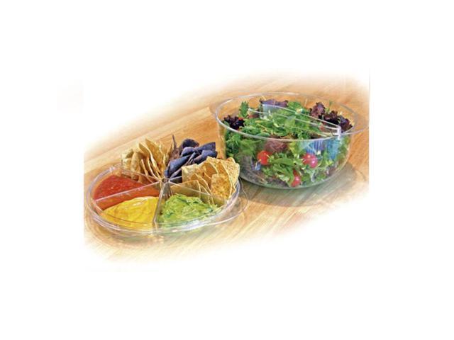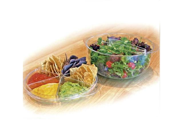 Handy Gourmet colorful plastic serving bowls Ideal for serving salads, cakes, and pies while keeping food chilled with ice in the bowl Versatile lid doubles as a cake platter, bowl functions as a dome cover Dishwasher-safe for easy cleaning Helps maintain food temperature when placed on ice