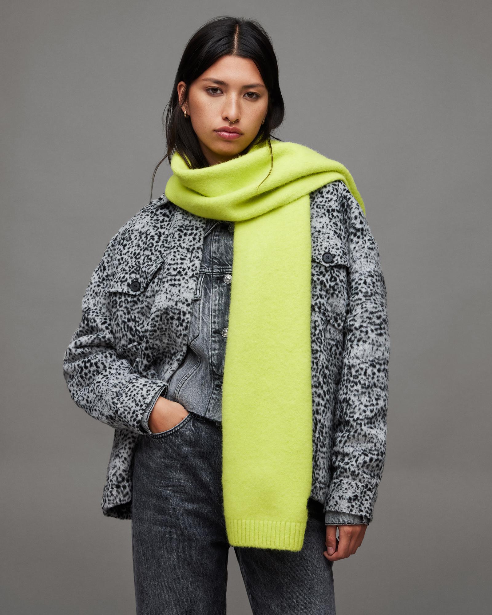The Jesse Scarf is here to keep you warm throughout the colder months. Crafted from a supersoft, brushed fabric in a large wrap around shape. There's a small leather patch embossed with our All Saints signature - take a look. Soft handfeel Brushed texture All Saints embossed patch Recycled materials