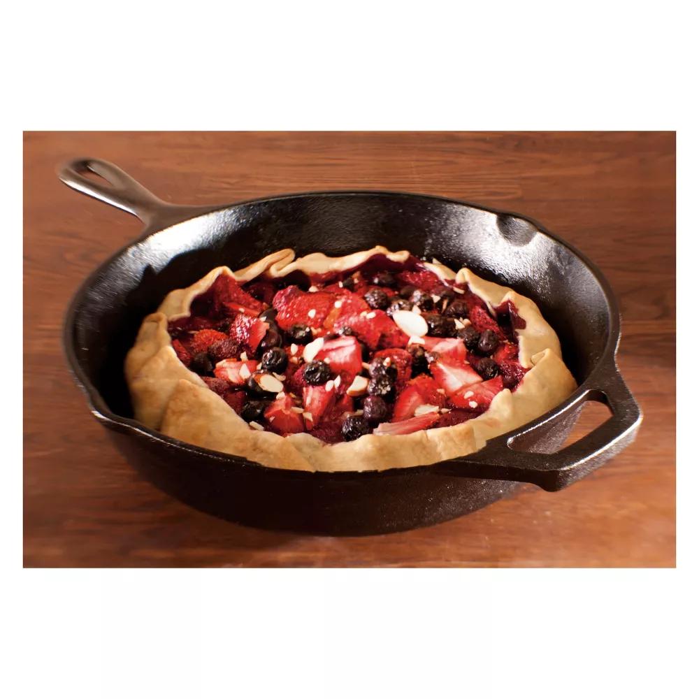 For 125 years, this original classic skillet has been a staple in kitchens around the world. Crafted in America with iron and oil, Lodge Cast Iron's naturally seasoned cooking surface is ready to help you turn your meals into delicious, shareable moments. Get excellent heat distribution and retention for consistent, even cooking from this skillet. Seasoned and ready to use. Plus, protect your hands from the heat up to 550 degrees F with the deluxe silicone handle holder!