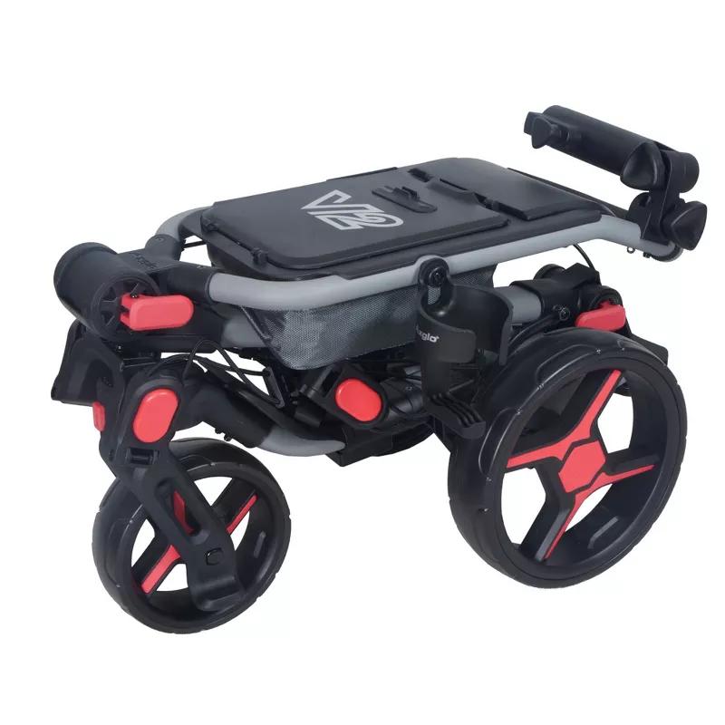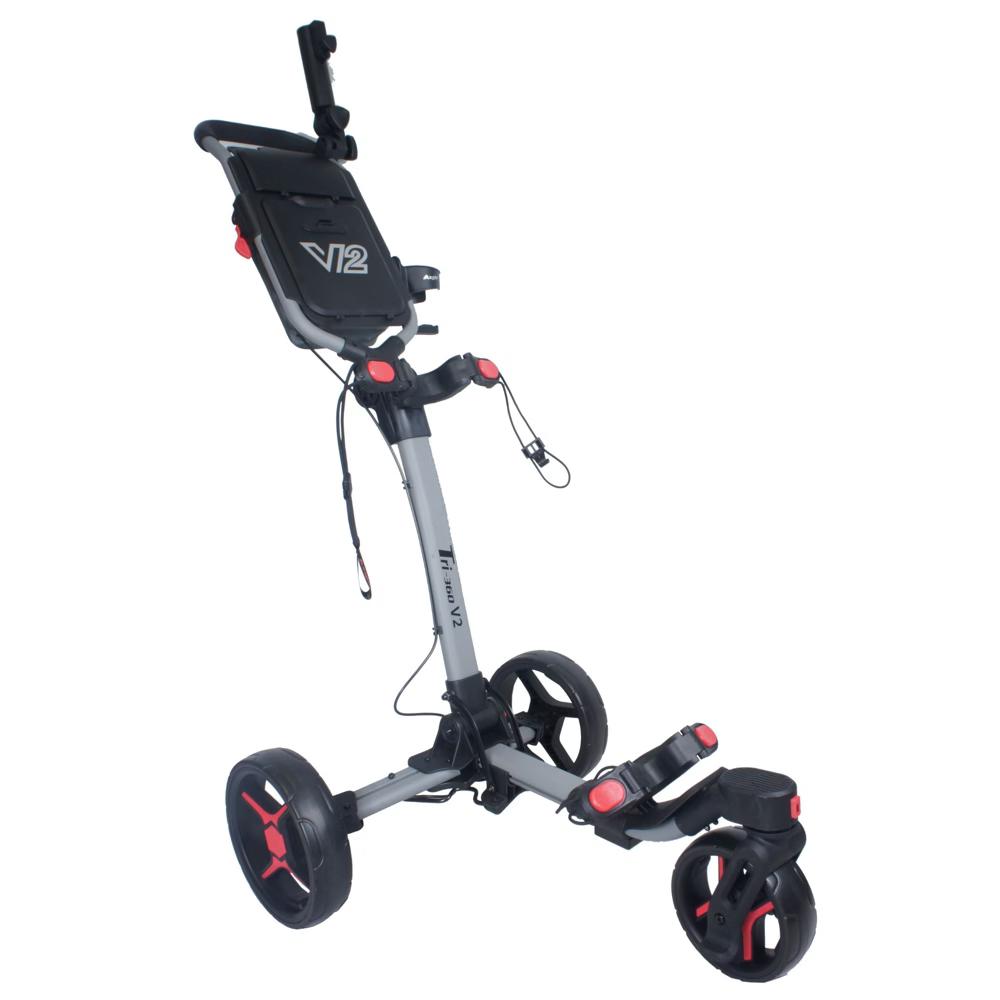 Axglo V2 Golf Push Cart - 3-Wheel - Patented 1-Step Folding System - Grey/Red