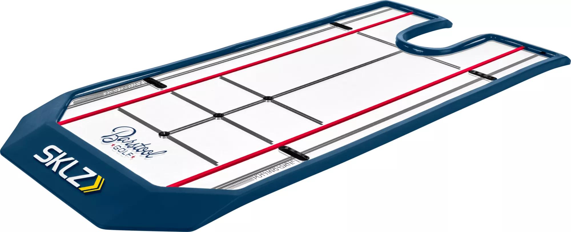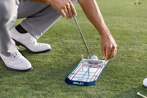 Premium putting mirror with ball cutout to putt directly from the green. Designed with alignment markers, the putting mirror helps practice consistent head and eye alignment by properly setting up each time. The built-in slots can create putt gates with tees for most putter heads. Convenient size for throwing in almost any golf bag, take it to and from the practice green. Measures 6 ½“x 12”. FEATURES Premium putting mirror with cutout to putt ball directly from on the green Alignment markers and mirror to practice proper head and eye alignment Slots to create putt gates with tees for any putter head Putter path lines for square takeback and follow through Convenient size for throwing in golf bag to take to the practice green Non-slip base mirror measures 6½” x 12”