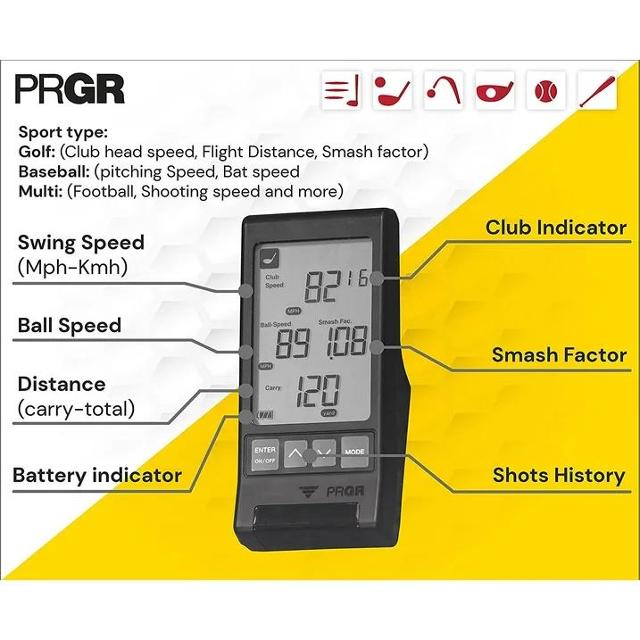 SUPERIOR ACCURACY: Uses Doppler Radar and precise algorithms to show your SWING SPEED, BALL SPEED, CARRY DISTANCE, TOTAL DISTANCE and SMASH FACTOR for each club. Can also use with Tennis, Soccer and Baseball. TRUSTED MANUFACTURING: PRGR has been making Tour-level golf equipment for nearly 40 years and is a division of the Yokohama company, famous maker of auto and truck tires for more than 100 years. Newest 2021 Model with an improved radar doppler sensor and ability to toggle between yards / meters 100% MONEY-BACK: 30 days, no questions asked PLUS an ongoing, 1-year.