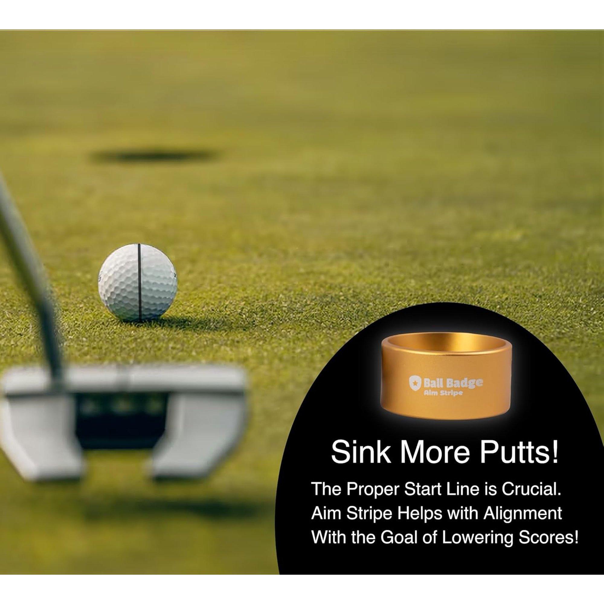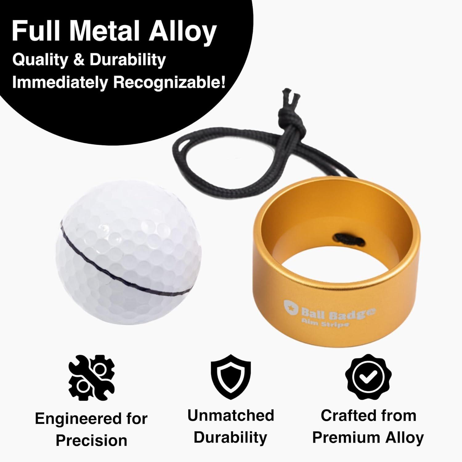 Ball Badge Aim Stripe - 360 Degree Golf Ball Line Marker Kit with Golf Bag Attachment - Golf Ball Alignment Marker Tool - Full Metal Alignment Ball Marker - Putting Alignment Tool