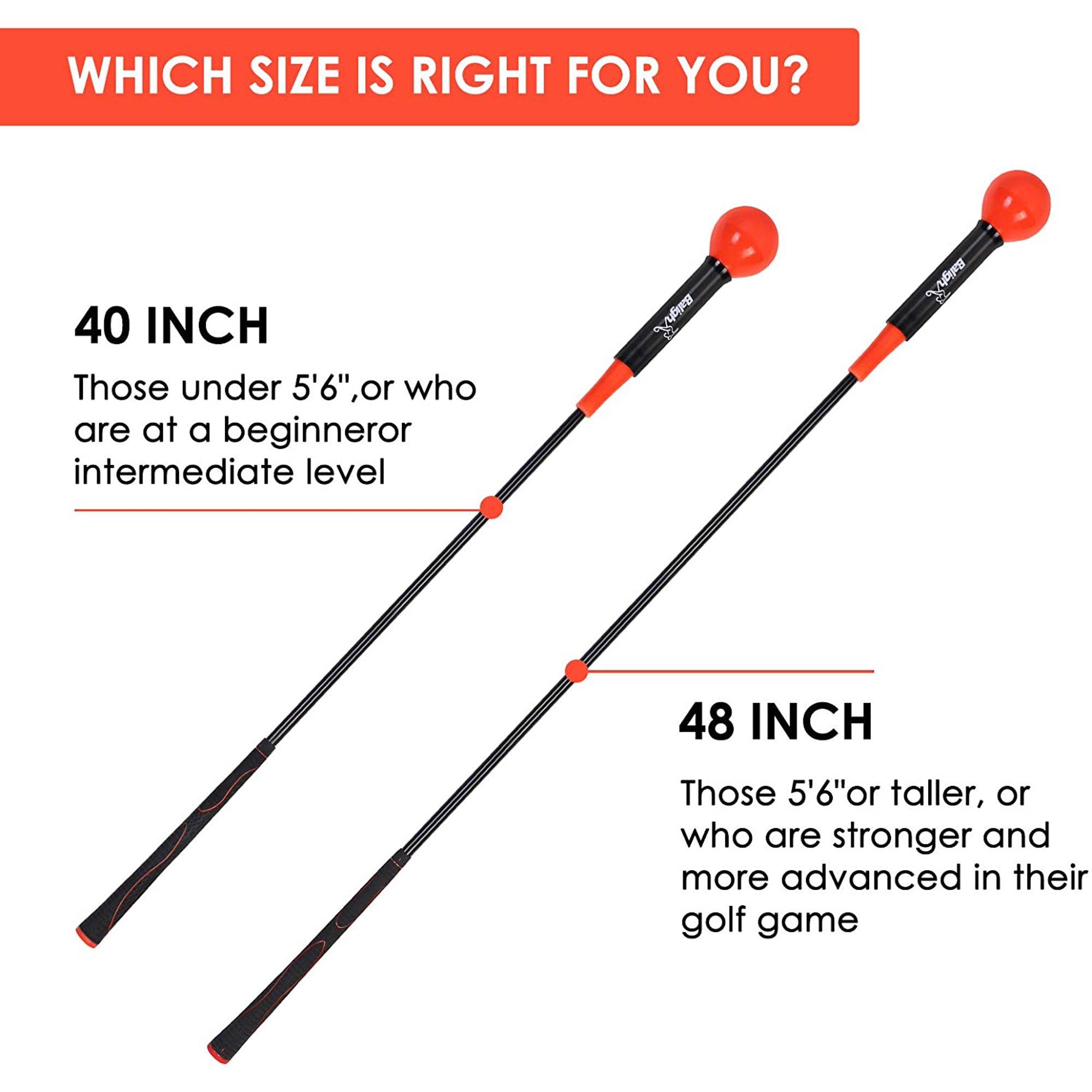 Durable, strong, and made to last Size:48 inch and 40 inch length Chioce: 5 Colours & 2 Size Ideal Golf Training Aids The exaggerated flex allows for a lag during your back swing to help find your tempo