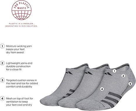 adidas Men's Superlite Stripe 3 No Show Socks (3-Pair)