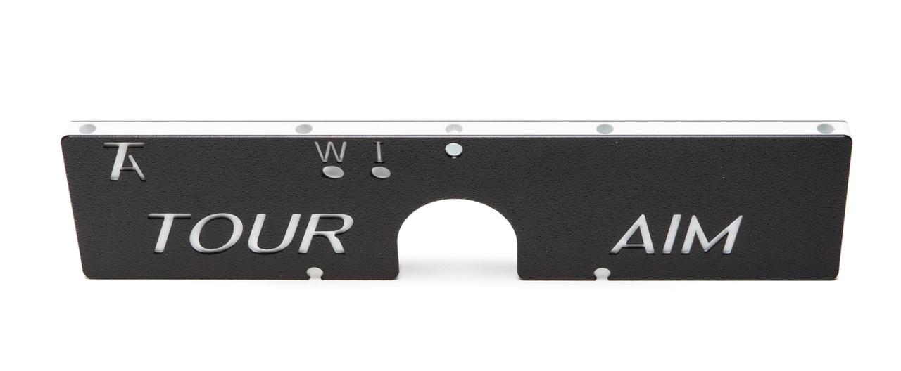 Tour Aim Golf Alignment Tool The Tour Aim Golf training aid helps improve and correct your golf swing plane and swing alignment. The Tour Aim is a solid wood block with holes drilled into it in specific spots. It allows you to place alignment sticks into certain holes so you can learn how to align your body, swing on plane, and even putt better. Features: Works with any standard 5/16 (.3125") diameter golf alignment stick. True Target Aim- aim and hit down the true intended target line Easily adjust TOUR AIM to new targets in seconds Alignment sticks sold separately